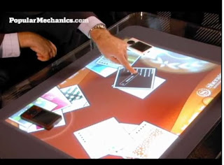Microsoft will soon be unveiling it’s new coffee table like computer, Surface. Surface has no cables or external USB ports for plugging in peripherals. Surface is extremely efficient it has no keyboard, no mouse, no trackball basically no obvious point of interaction except its screen. The user simply needs to touch the view screen to use. Uploading digital photos is as simple as placing the camera on the screen and watching the photos pour out. From there you can edit them with slight touch and drag motion. This is about as close to the computing technologies that were imagined in the film adaptation of Minority Report as we have come yet. Very exciting indeed.