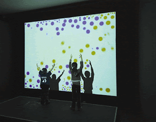 Messa di Voce is a collaboration between Golan Levin and Zachary Lieberman. The project consists of mircophones placed in front of a projection screen that displays various animations. Viewers are invited to speak into the mircophones and then their voices are interpreted and transformed in various moving images such as “a rain of balls, smoke whorls, cartoon costumes, and line drawings.” The animations are created based on the emitting “pitch, volume, and phonetics” of the vocalization. The project is an interesting attempt to convert a very basic means of communication, voice, into abstract visual representations. The project also draws upon the way words are pronounced providing a graphical interpretation of an intuitive skill, exploring meaning through intonation.
