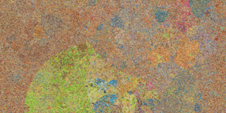 This is a visualization of all the nouns in the English language as a mosaic. Each of the tiles represents one of 53,463 nouns. Tighter groupings of colors (such as the green) might correspond to a specific category such as plants/trees.
