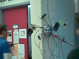 this is a pretty big in size (spans a 4 meter circular pond and is over 2 meters high) kinetic sculpture by Martin Smith. It is all about simplicity, repetion, rhythm and is ment to act as a meachanical reflection of the water below. It has movement sensors which activated the sculpture as people walk by.