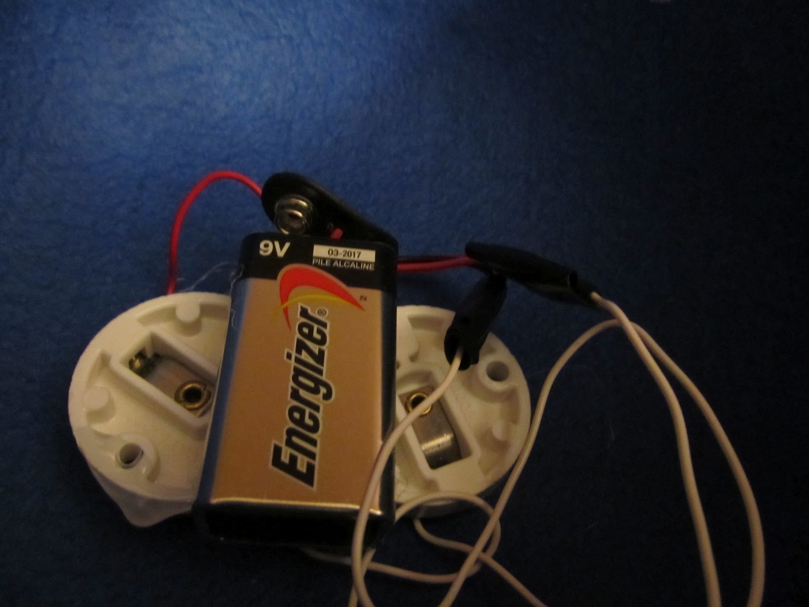 Detach one end of the battery connector just far enough to leave the circuit open, but close enough so that when the individual puts on the hat, the circuit closes (As shown above).