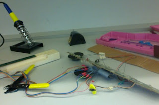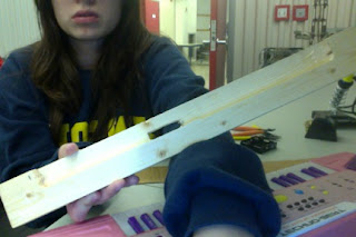 Step 3: As said previously when you got your ruler wood frame lead the wires through the hole then I was able to start soldering.