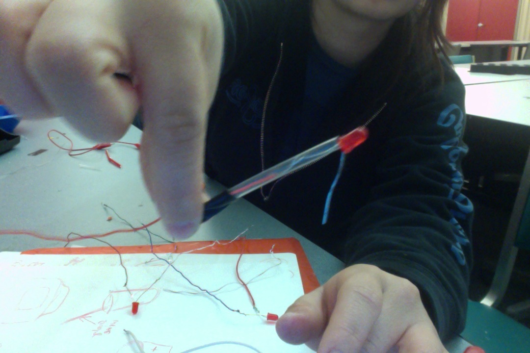 So two wires to a LED was enough to light the circuit. I made three of these exactly the same.(PS. we did try adding a resistor but it made the lights to dim so testing it out it turned out to be okay with just the two wires and LED.