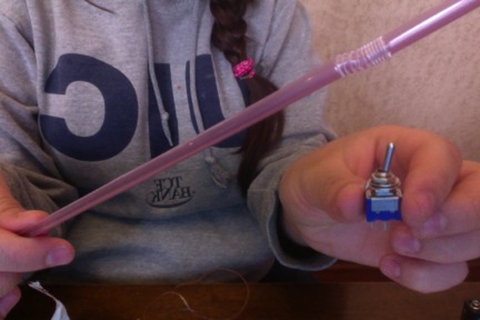 Found some straws figured it could be the stem of the flower and a good support and separator of the power and resister of the LED light.