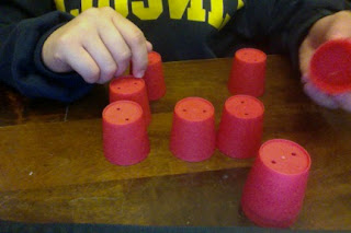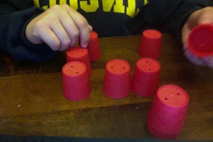11. Find a tiny container for one bucket and place the bucket in there. (Secure it with tape if anything)