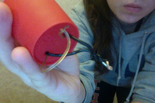 7. Stab the sturdy wires to their respective sponges Positive wire to Positive sponge(or what you have