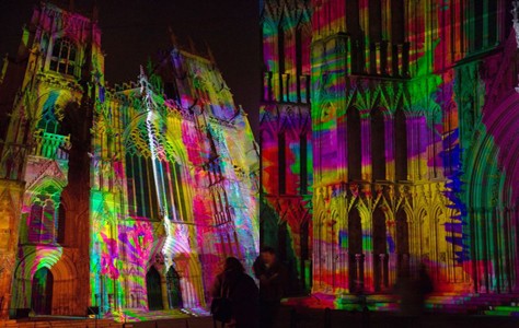 projected onto the facade of the York Minister Cathedral in York, England. It works under the