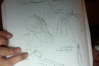 Not the best drawer but these materials are what I need or have now. Items are the hat, random wires, a vibrating toothbrush,  Toy motor,  and maybe a flex sensor.