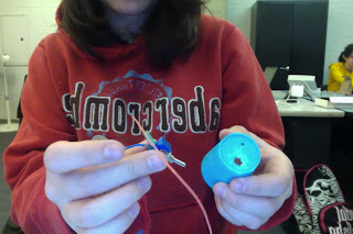 4. When connecting your button switch I used a small plastic cup and made a hole. Using a toggle switch that has some movable screws on top you can securely fasten your toggle switch onto the plastic cup.
