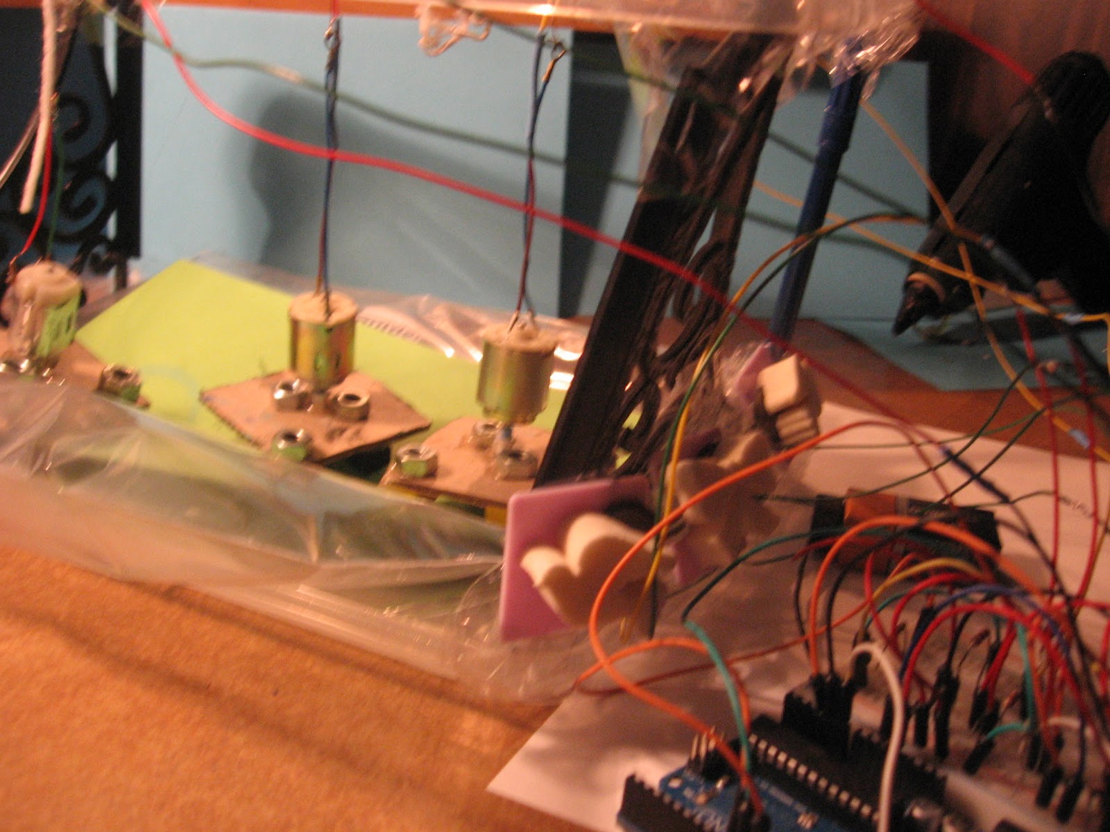 Below I have the code, the pictures, and the video for the drawing device. Thank you for your help Sabrina, and I am sorry about the misunderstanding in getting the other motors to run. I also have the video uploaded to dropbox as well as here.
