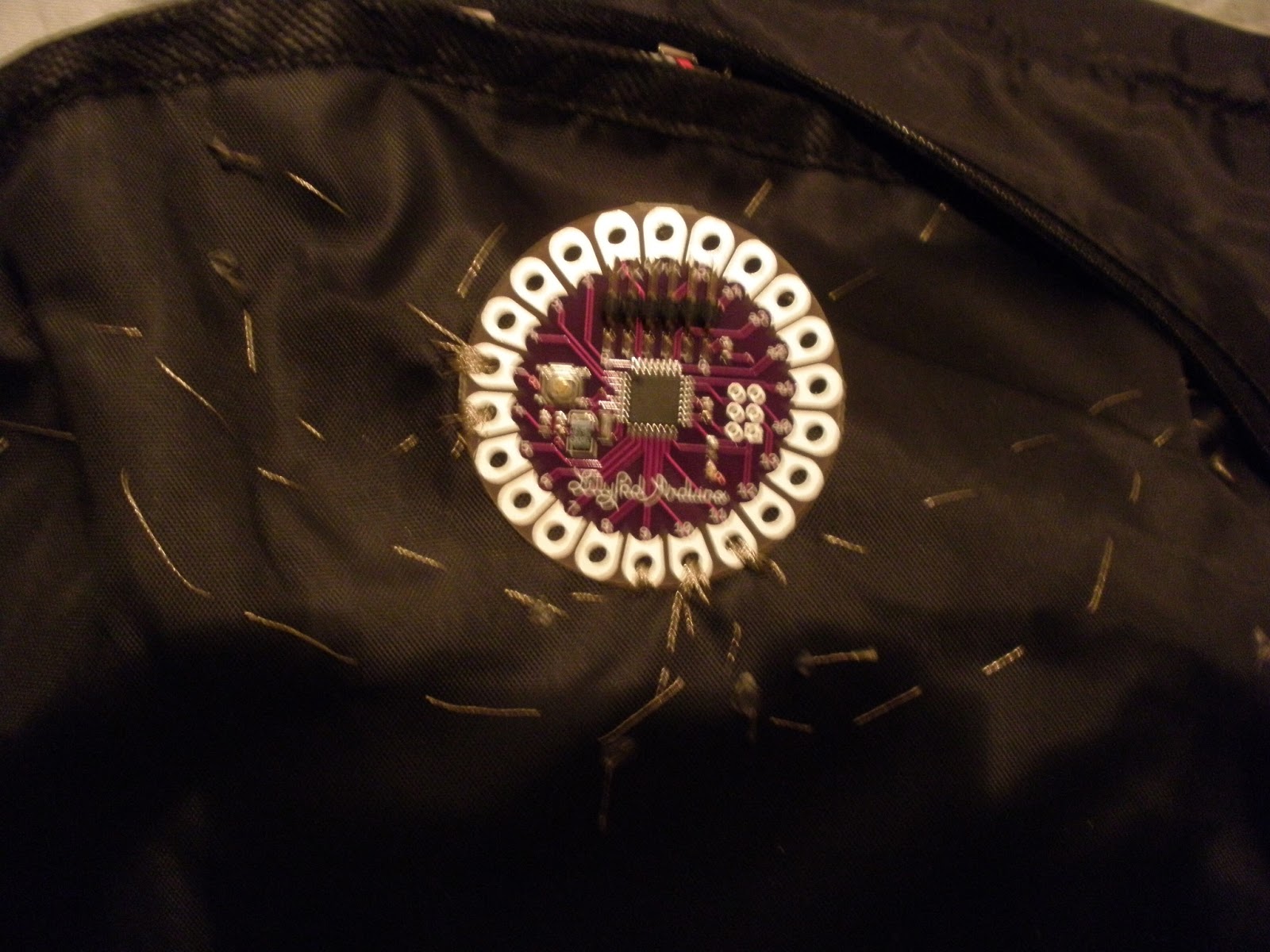 I created a wearable project in which the intent was to create a backpack that with a press of a button would control turn signals. I went through some setbacks and problems with the connections. Currently the backpack only flashes on the back left side. Below I have loaded my images, video, and code for what is presented.