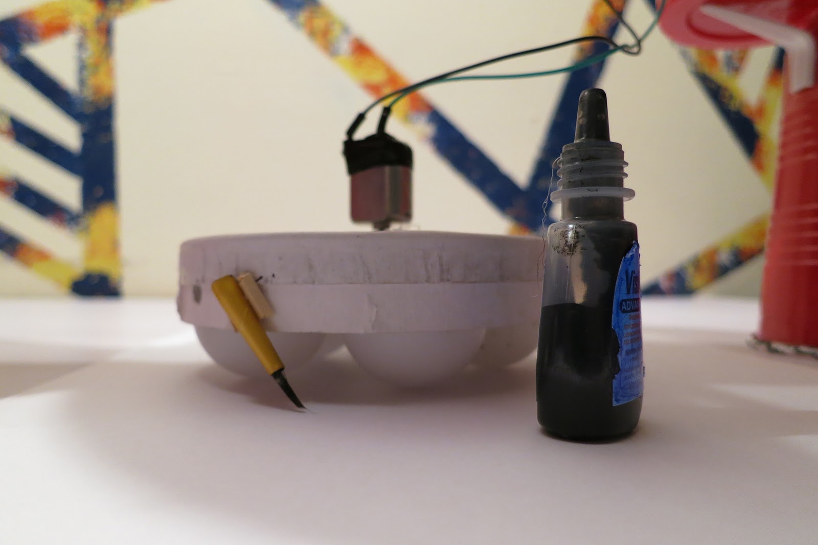 side where one can deposit ink so that when it spins, circular marks will are made, but not entirely as some marks are more organic. Material wise, I’ve