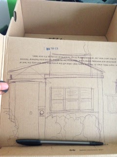 2. draw the scenery and plan out where electronics go on shoebox top. When everything is planned, cut out the holes for door bell, window and mini holes for sound to admit out.