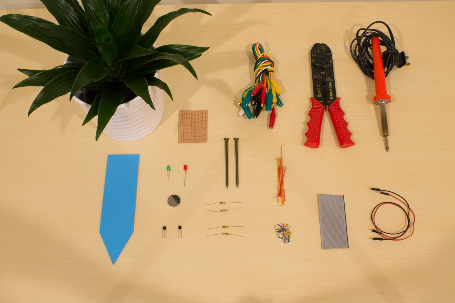 ☝ When you water the plant, the circuit between the two nails completes and the green LED will turn on