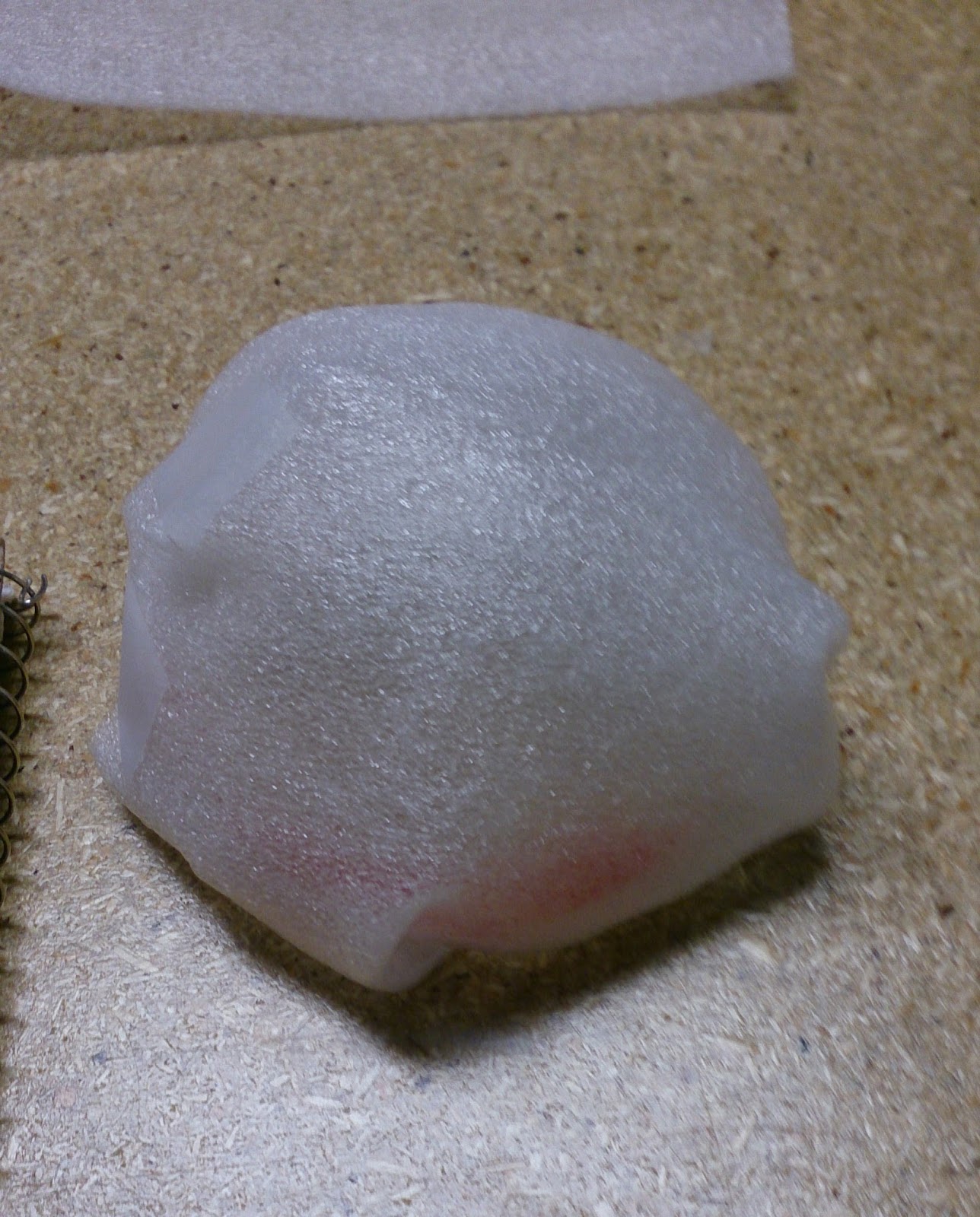 1. Start of with cutting the ball in half with a pair of scissors. After cutting the ball, cut a circle out of the foam wrap, the wrap should be larger then the diameter of the ball. Afterwards wrap the foam wrap around the surface of the ball. Tape the wrap to the inside of the ball.