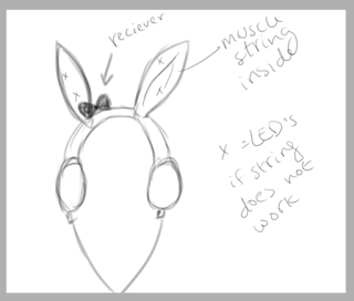 A wearable that I would like to create for the second project are headphones with cat or rabbit ears attached to them. The concept behind this project is that whenever the headphones detects a sound or light (depending on the receiver) the ears would move in reaction to it. I do not know it muscle string would be strong enough to move the ears, if the string does not work then I would like to use LEDs and have them light up in patterns or respond to the receiver or what is being received.