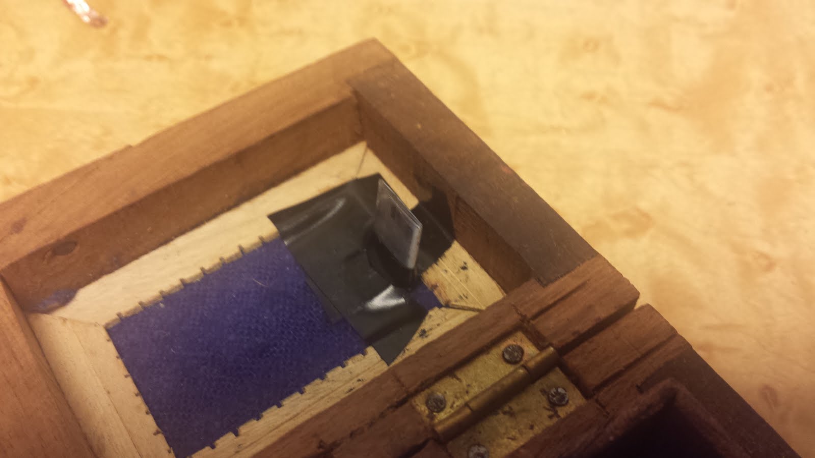 Step 10: Assure that your barrier, switch, and “circuit board” are securely attached and aligned, and text out closing the box very slowly at first to see if it functions as wanted. If so, congratulations! Enjoy your shiny box.