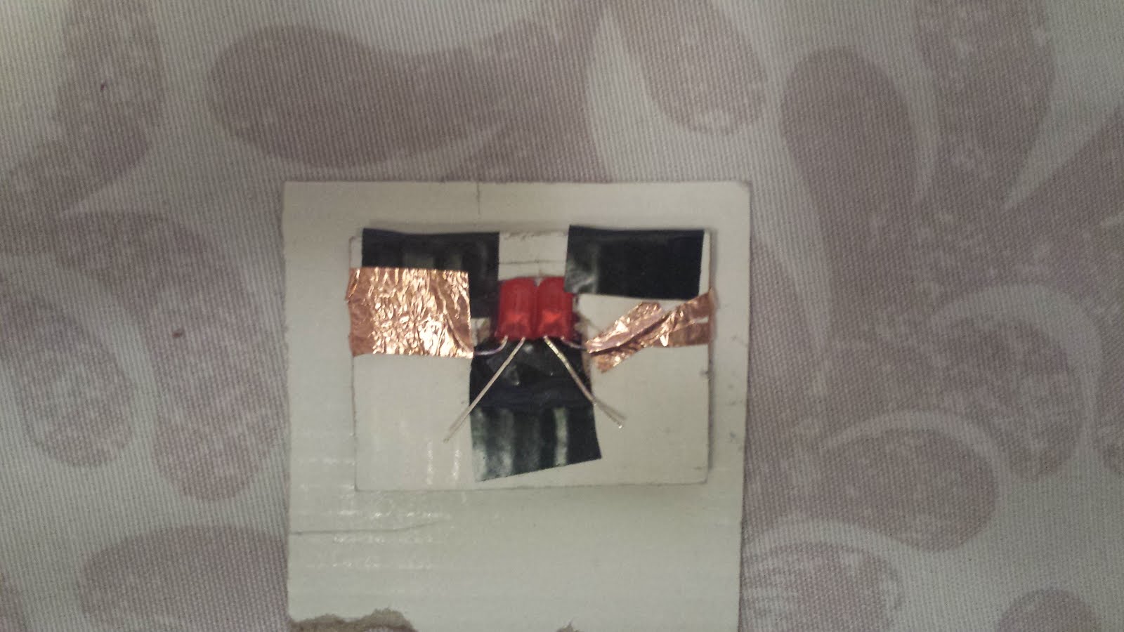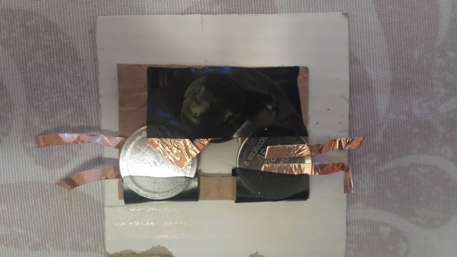Step 6: Take your two conductive surfaces and attach a wire to each, possibly soldered, or with copper tape. Press them together between two pillows made of the soft material, all bundled tightly in tape.