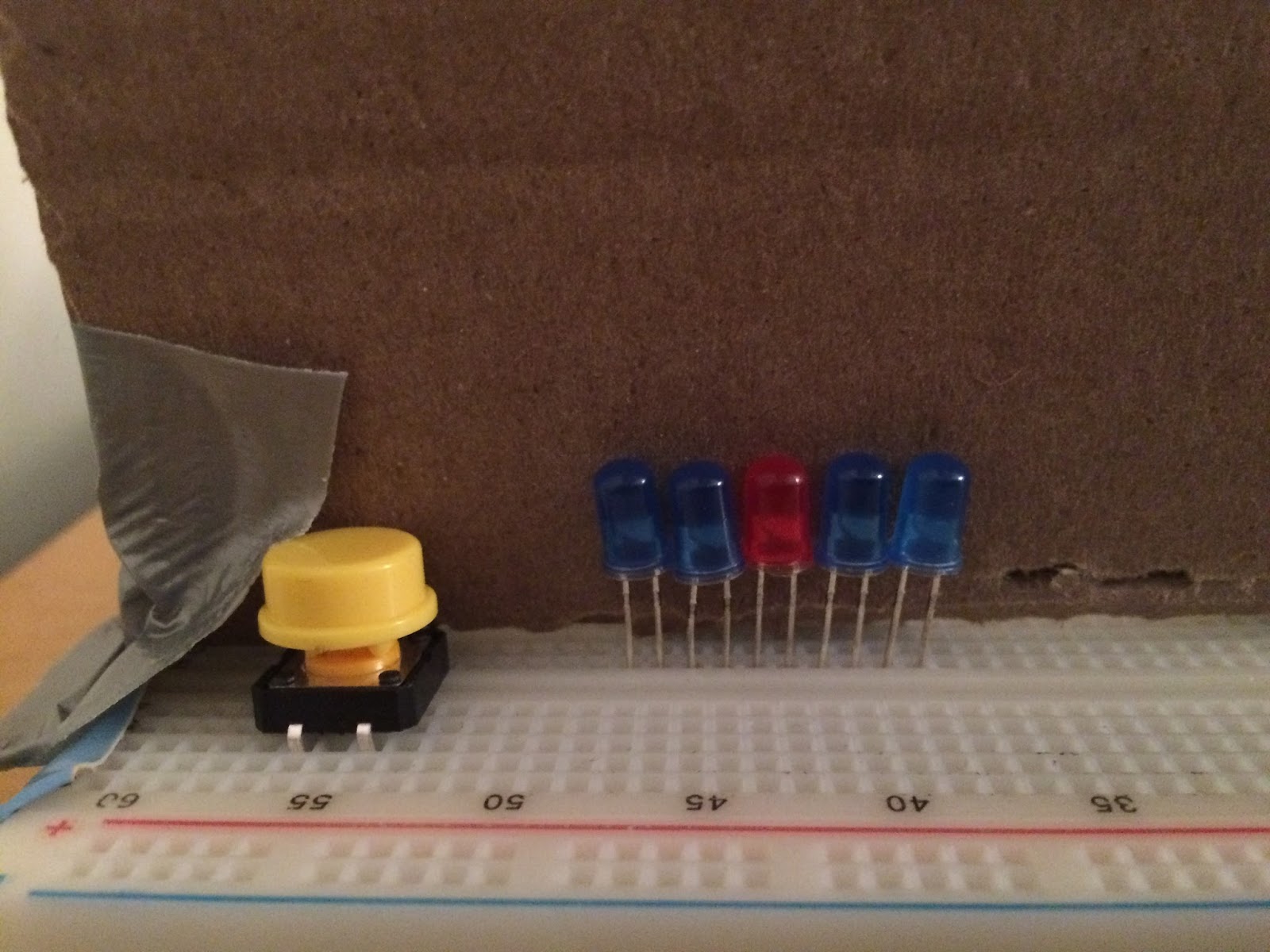 My project is a game that requires you to use accuracy and timing in order to reduce your total score to 0. There will be LEDS that light up one by one and your objective is to push the button when it hits the red led. If you hit it anywhere else, then you lose. In the end the LEDs will light up and the amount of LEDS that light up will be the amount of candy you will receive. I thought this would be a fun game for trick or treaters because of how easy it is and the prize being candy.