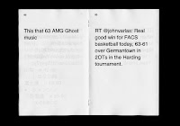 I was inspired by Cory Arcangel’s “Working on My Novel,” a twitter feed and book which compile tweets from various authors linked by their use of the phrase “working on my novel.” This project alludes to other forms of post-digital publishing that also ask questions about what it means to create a physical archive using content that was never conceived as such.