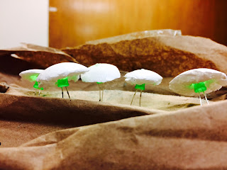 I tried three different kinds of styrofoam for the caps… The best result came from the smooth styrofoam ball.