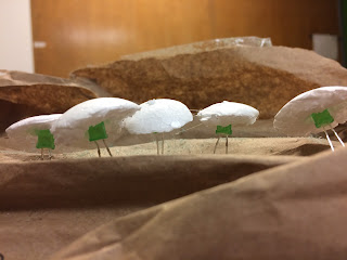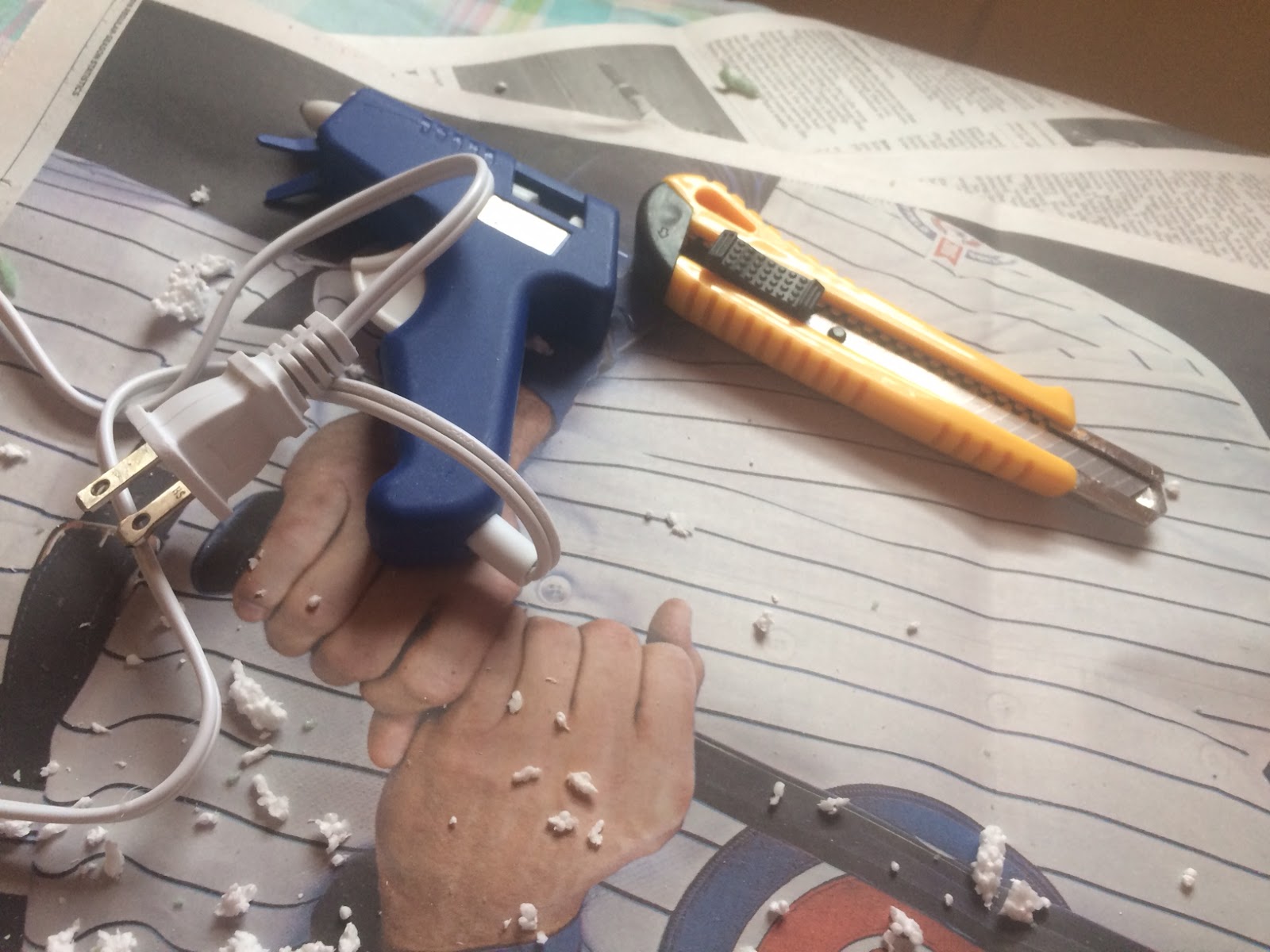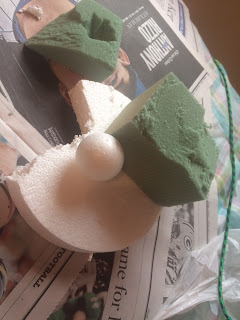 I tried three different kinds of styrofoam for the caps… The best result came from the smooth styrofoam ball.