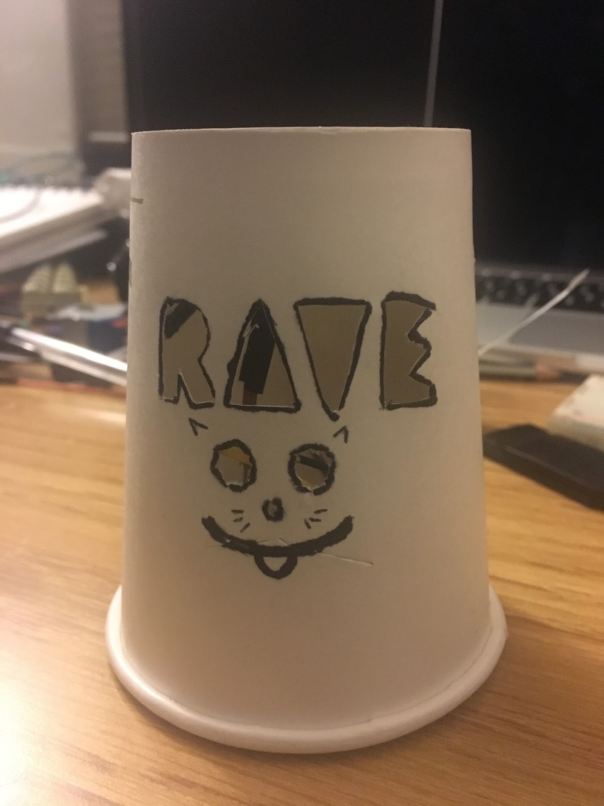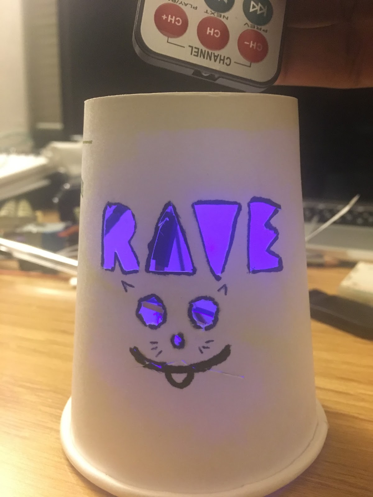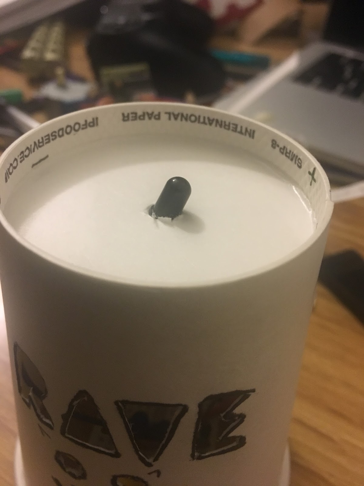 a. Cut anything creative you want into outside of cup (whatever casing you’re using). Make sure to cut small hole at the top for the infrared bulb.