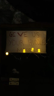 3) linked 4 LED’s like protestors protecting the message “give us your huddled masses”
