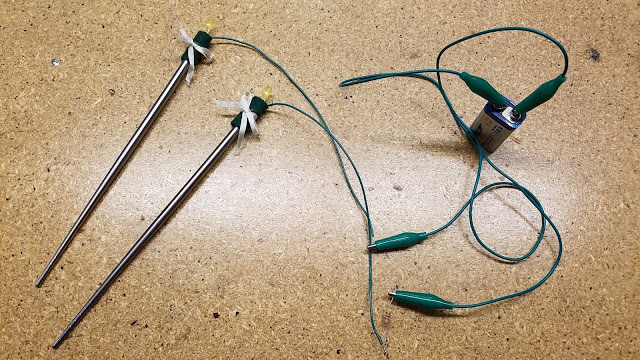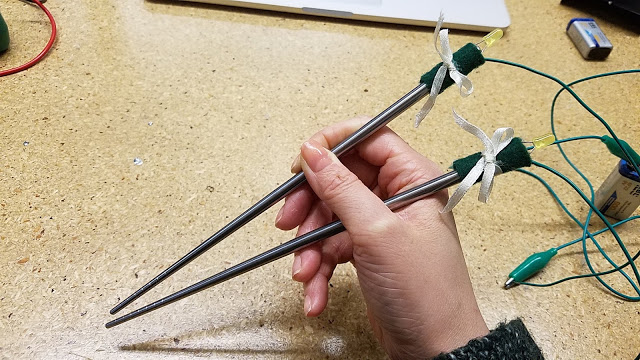 For my creative switch, I decided to turn on two LEDs by touching chopsticks together. In Korean culture, often metal chopsticks are used which is where I got the idea. Each LED was attached to the non-eating end of a chopstick. Follow these steps to make Light-up Chopsticks!