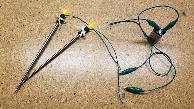 If at first they don’t seem to light up, try and switch the alligator clips on the battery.