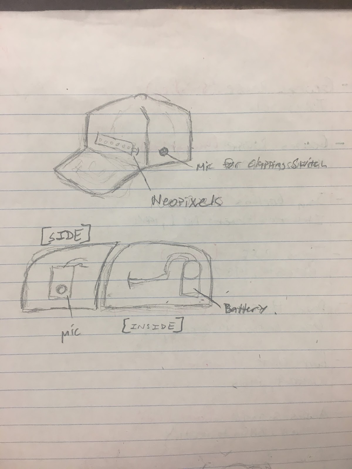 What I was thinking of doing is making a wearable neopixel hat.  The neopixels would go on the front while the mic on the side, and is controlled by clapping them on or off. Or they can be controlled by clapping different colors.