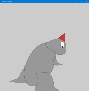My mother requested a Godzilla; I’m not sure this looks like it (especially after the hat). It needs some sort of spines, but I struggled enough with rotating shapes for today. I think I’ll stick towards the abstract in the future.