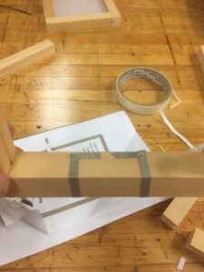 - NEXT, TAPE YOUR LIGHT DOWN, ATTACHING THE CORRECT LEG TO THE CORRECT SIDE, THEN USE COPPER TAPE INSTEAD OF MASKING TAPE TO HOLD DOWN THE LEGS AS SHOWN IN THE SECOND PHOTO.