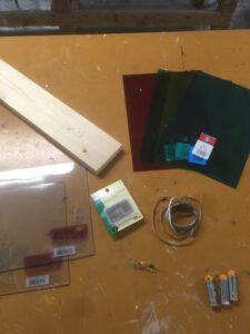 MATERIALS: (EXCLUDE THE BATTERIES, CLEAR RUBBER SHEETS, AND WOODEN PLANK)
