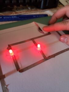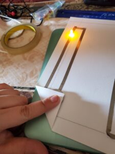 • Determine the location in which the cell batteries will be located at (I chose 3 corners of the mixed media paper) and mark where you will make any folds. These folds will allow for the closure of the circuit when a certain amount of pressure is applied.