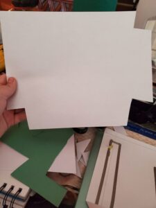 • Moving onto the printer paper, cut out the corners of the (printer) paper that lay on top of the folded corners of the mixed media paper.