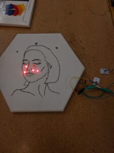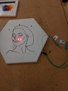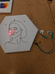 For this project I made an embroidered canvas crying red. I chose to make it crying, but it can be easily changed to create different emotions; by making it blush, or have lights around its head. Here is the walk though.