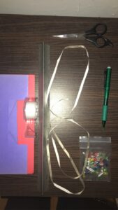 Using construction paper and a pencil create a 4 inch by 3 inch rectangle for the house, carve two windows that are half an inch by half an inch squares for the LED’s to be put into.