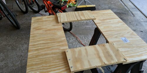 With that hodgepodge of parts, I started with the piece of plywood: