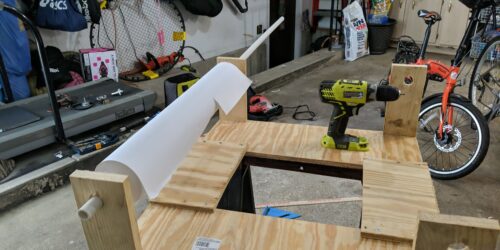 To actually attach this, I simply used 1/4 inch screws. The wood was soft enough I didn’t need to pre-drill a hole; you can simply press the nail into the plywood with the drill and then use the screw itself to drive into the board. With the extra space that this provided, I had enough room to attach what would become holders for the two spools: