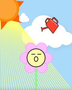I was inspired to capture the joy that plants might feel when they are being watered. This is the sentiment I tried to emulate in my piece, “Happy Flower.” The empty watering can follows the user’s mouse, and when you press down, water should come out of the watering can. The sun in the corner is made up of an ellipse and triangles, and the flower is composed of ellipses and a rectangle. The idle expression on the flower’s face is also made up of shapes, including lines and an ellipse without fill. I was able to create the beaming sun rays using a for loop. I also managed to make the clouds in the background move horizontally across the screen using the display and move functions. The images I used were of a cloud, smiling face, and watering cans (empty and pouring water). This piece is meant to personify a flower who is happy to be taken care of.