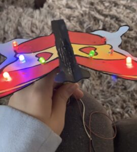 You could place the LEDs however you’d like, I placed four on each wing and made the locations mirrored on the wings. I used a pencil to poke holes for where the LEDs could be inserted.