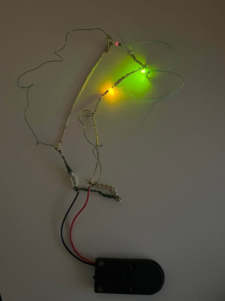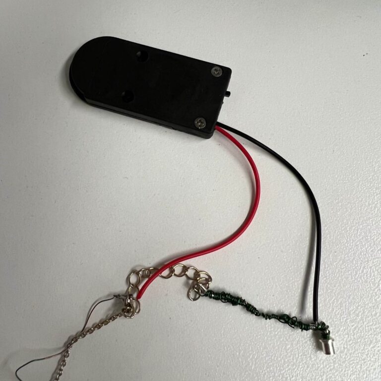 For my creative switch I wanted to make a necklace that lit up. Specifically I really wanted the clasp to serve as the switch. So the motion of closing the necklace would light up the LEDs. The LEDs also take place of gems/charms that are usually on a necklace.