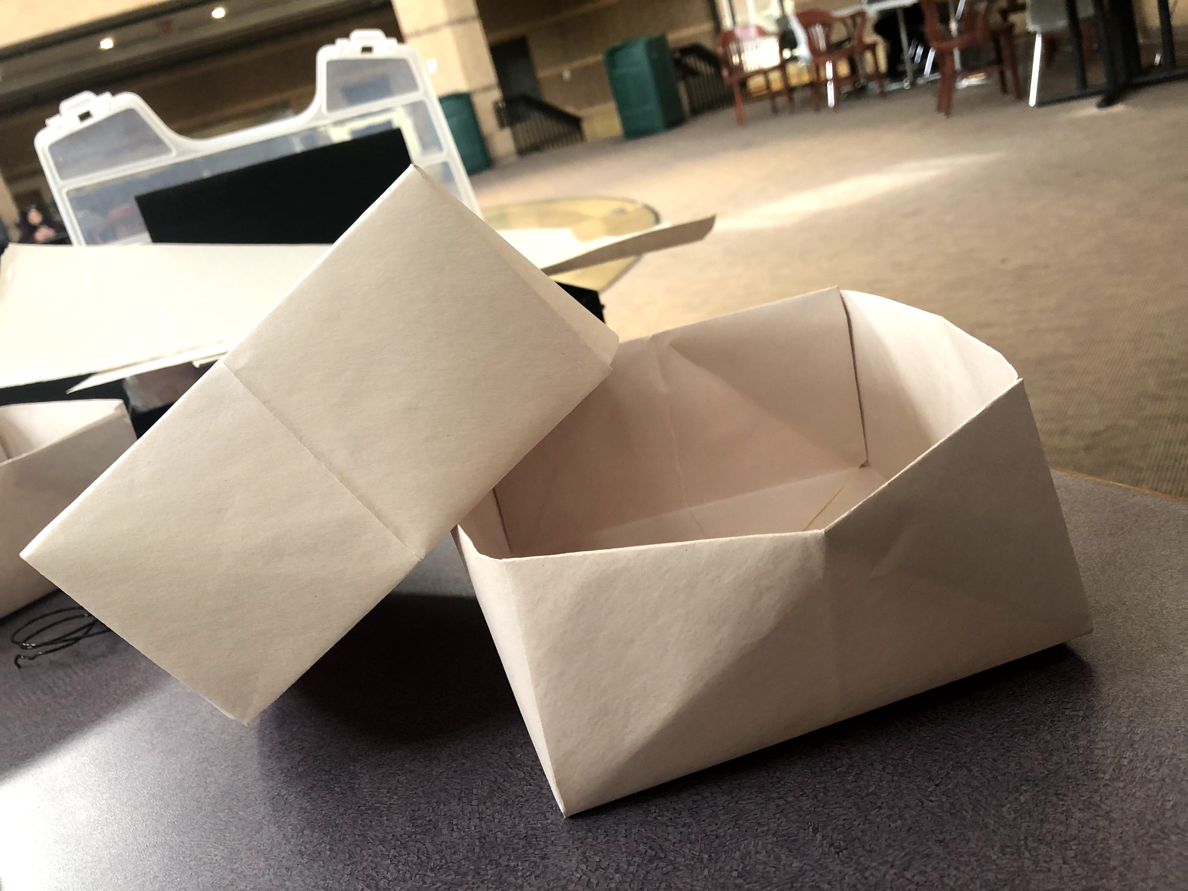 Attach a second origami box and tape the two boxes together using the clear tape.