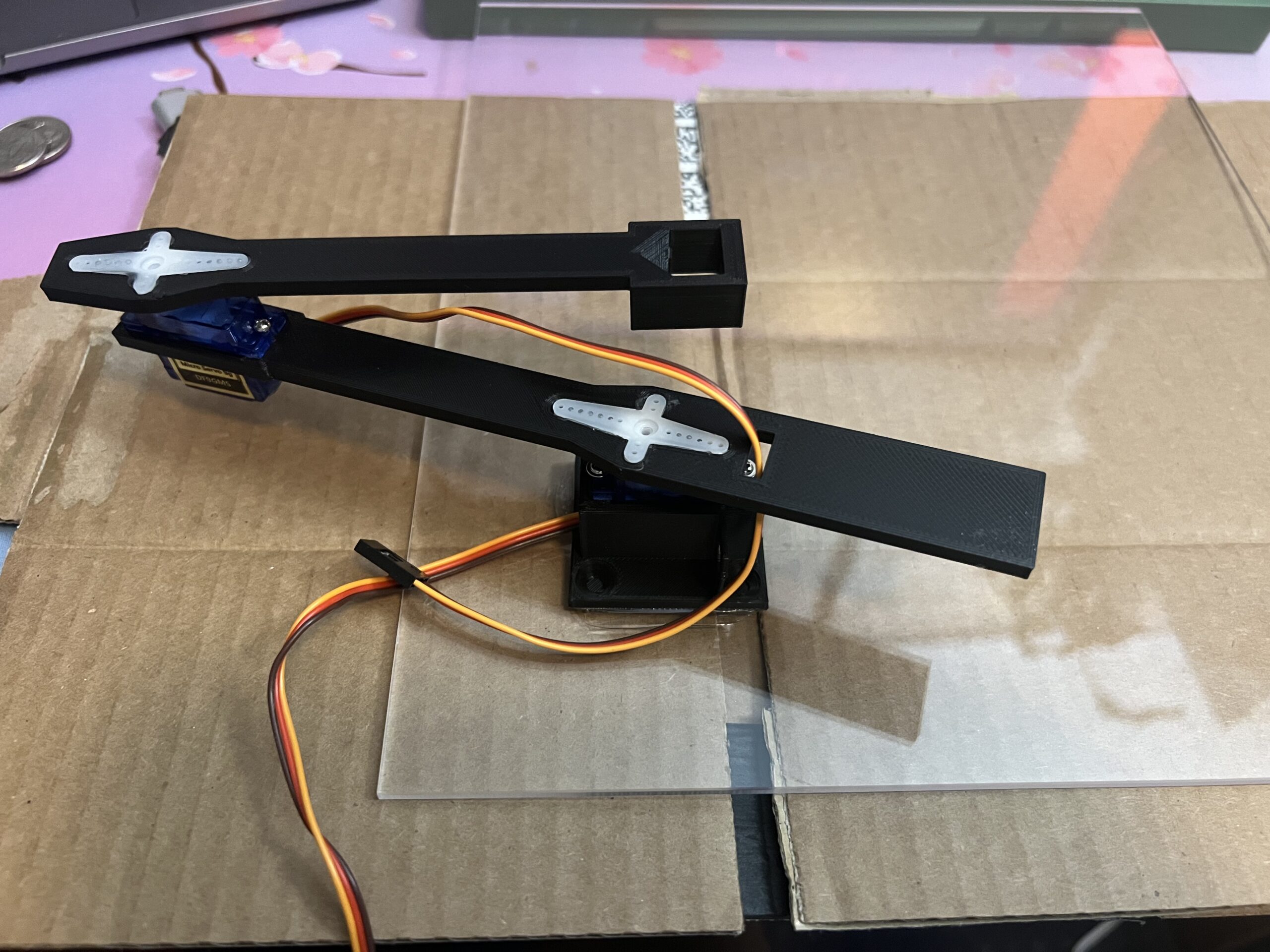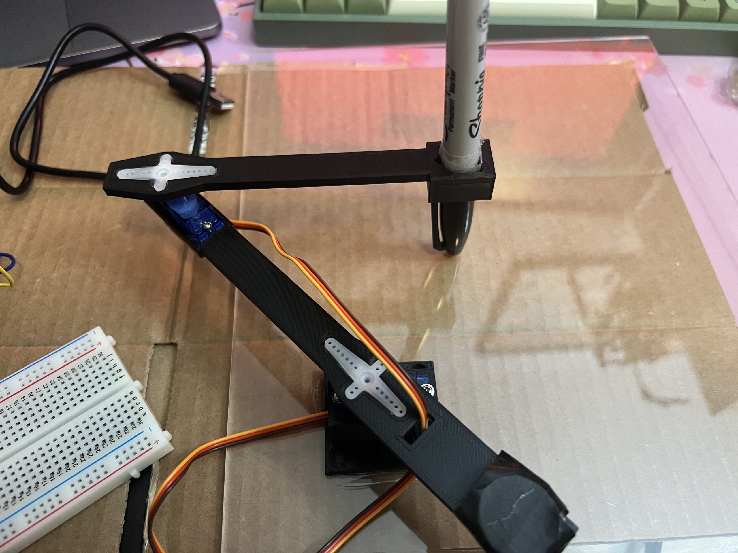 My final project is a servo motor drawing arm controlled by an arduino using motion. The idea is for the arm to follow motion from your hand, which then gets drawn out. A secondary part of the project also gives a digital representation of your motion controlled drawing on processing.