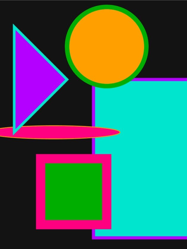 In our first assignment, I really just wanted to make a still abstract image with colors from the ’90s. My main goal was to just get the hang of how to use code. I then wanted to create a simple design consisting of different shapes. I added the opposite color for the stroke and it…