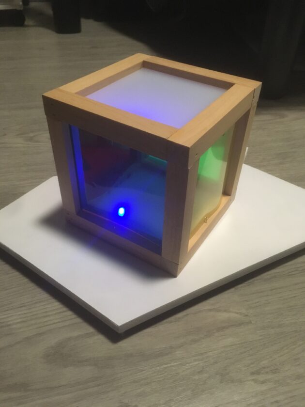 SORRY, THERE IS NO CLICKBAIT, YOU HAVE TO COMPLETE THE PROJECT TO SEE THE FINAL PICTURE. MATERIALS: (EXCLUDE THE BATTERIES, CLEAR RUBBER SHEETS, AND WOODEN PLANK) 1 INCH WOODEN DOWEL 4 DIFFERENT COLORED FILM SHEETS (R,G,B,Y) 4 DIFFERENT LED BULBS (R,G,B,Y) 3 VOLTS WATCH BATTERY SMALL PINS COPPER TAPE ALUMINUM PUSH PINS WHITE PAINT…
