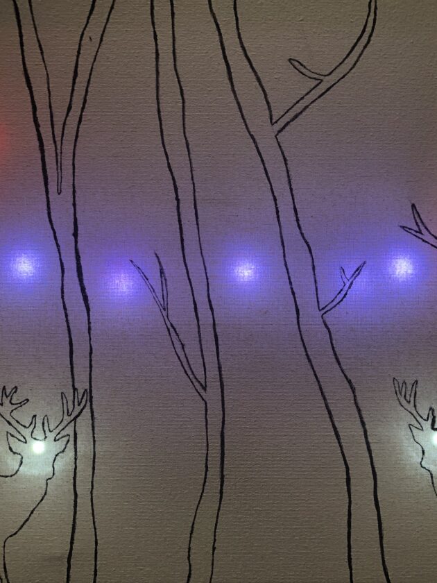 FINAL VIDEO DOCUMENTATION For my project, I made a sound reactive back-lit canvas. The lights behind the canvas turn on based on the loudness level of the sound the sound sensor on the Circuit Playground Express picks up. Materials Needed: Your painted canvas A poster board (cardboard or any thin, sturdy material could work too)…